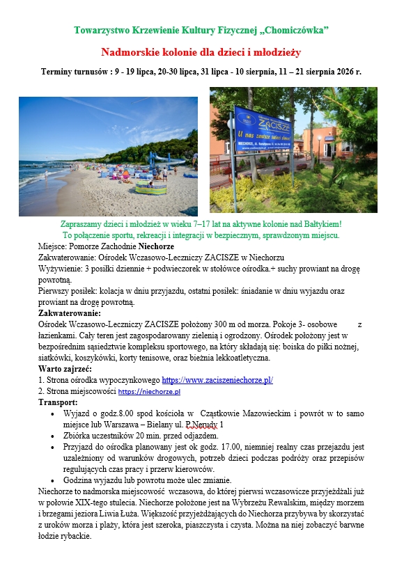 Zadanie publiczne pn. „FJT – Fitness, Joga, Taniec” było realizowane przez TKKF Chomiczówka na terenie m.st. Warszawy przy dofinansowaniu ze środków Ministerstwa Sportu i Turystyki.